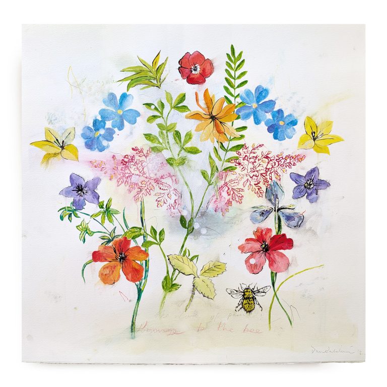 His dynamic images shift thematically, from ruminations on love and memory to philosophy and politics. Baldwin’s dynamic canvases incorporate multiple planes and perspectives, utilising a broad range of media. As well as traditional painting and mark-making his images often incorporate 3D elements, gilding, glazes, diamond dust and collage.