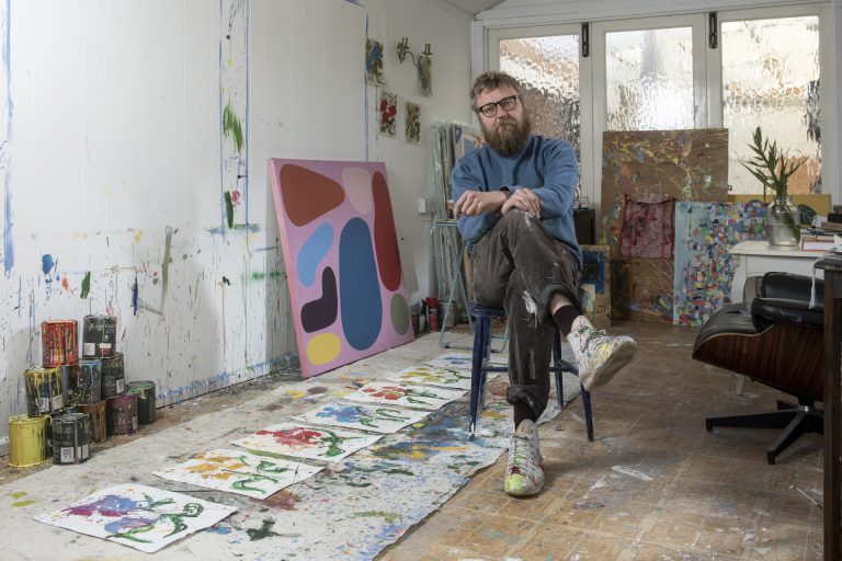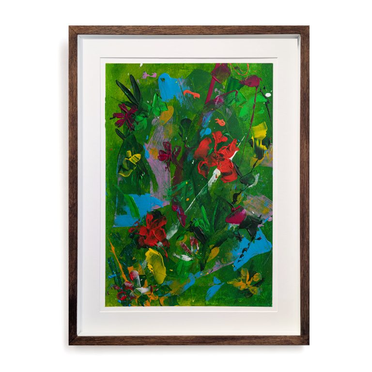 His evolution into abstract painting has been a natural development, a more personal expression of colour and form painted instinctively. Vibrant hues that are often otherwise incompatible find harmony within his bold compositions, evoking a sense of beauty and joy from what could easily fall into chaos.