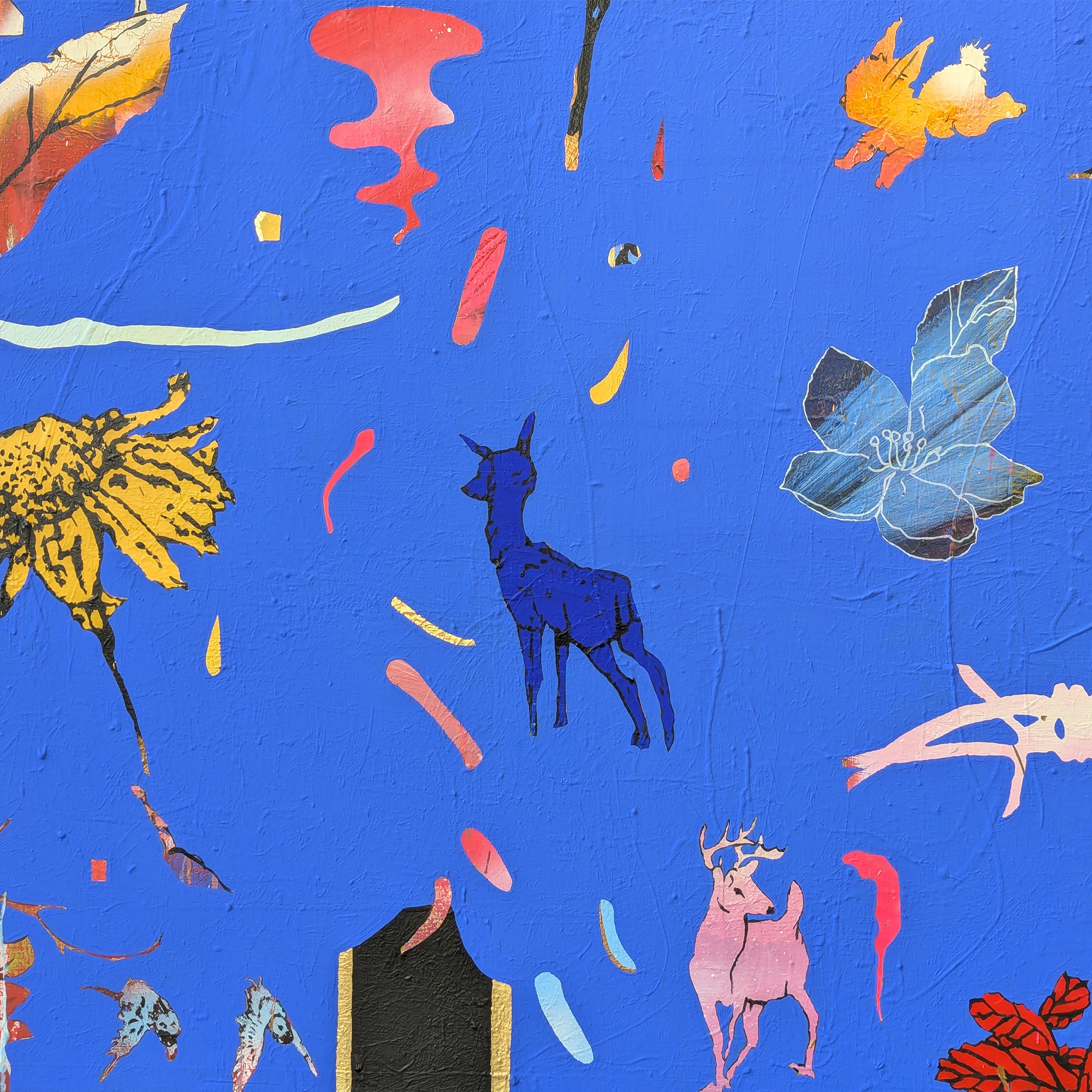 Acrylic, spraypaint, gold leaf and pure pigment on canvas